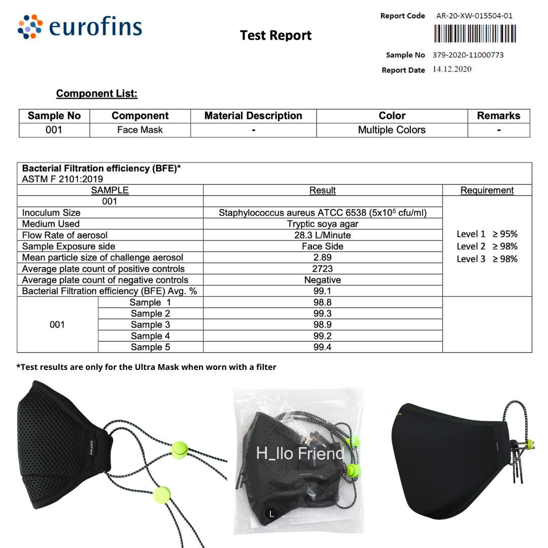 • The H_llo Friend Ultra Mask 1.0 is reusable, washable and comes with two FilterTech ® filters. Perfect fit across 5 sizes from kids to adults, anti-microbial finish, our own custom CoolMax inner liner to wick away sweat and keep you feeling fresh, and two head strap configurations (over ear or over head).  This is the mask we wanted for ourselves, so we went ahead and made it 😉