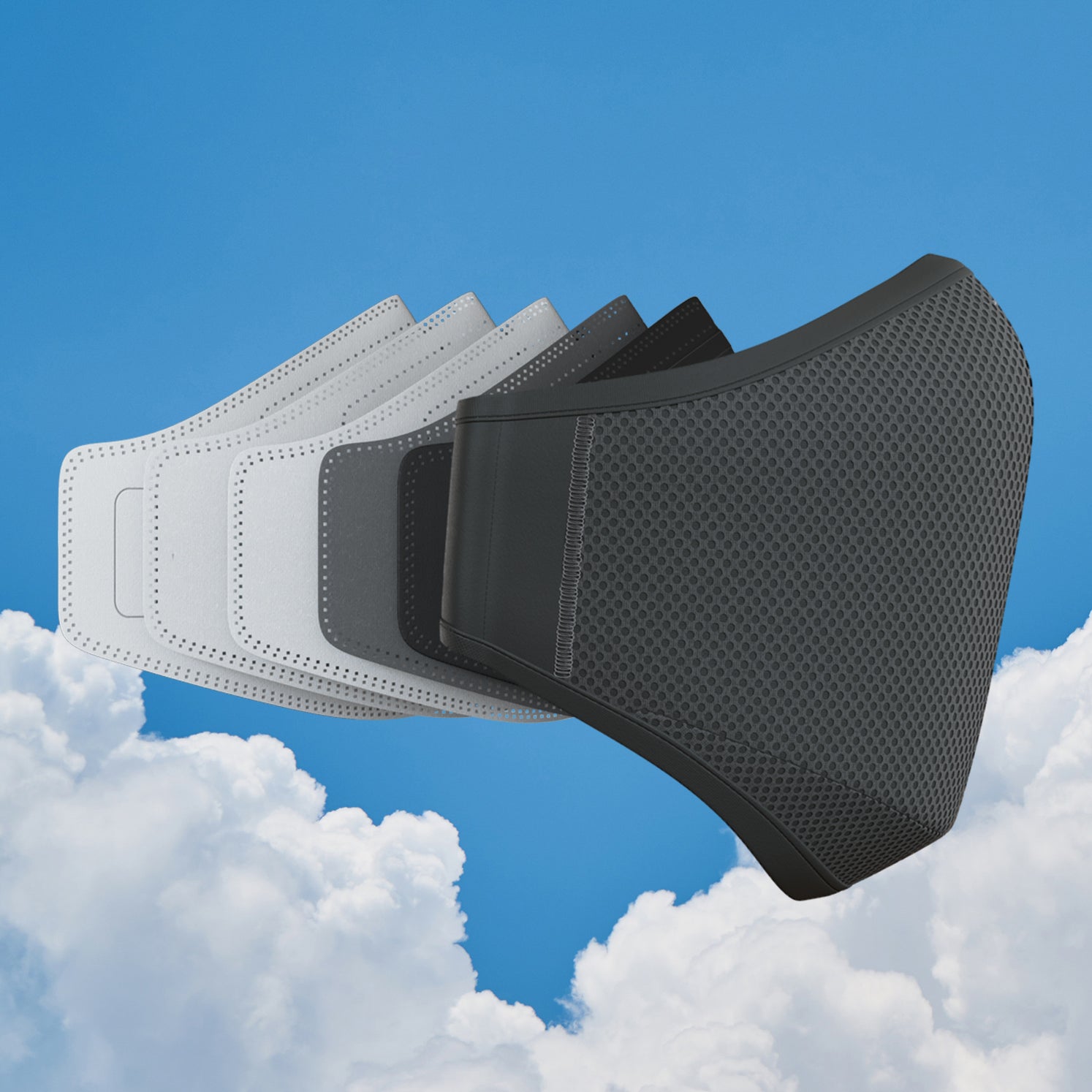 Mask Outer: Breathable and protective, 100% recycled polyester knit fabric with anti-microbial finish.