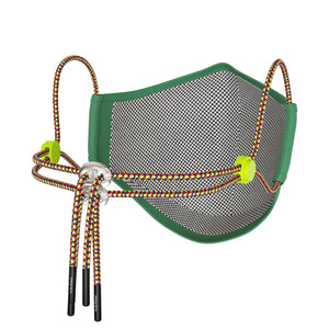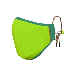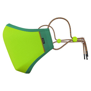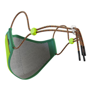 Our outer shell is made from a breathable, 100% recycled polyester knit fabric which is treated with an anti-microbial finish to keep your mask fresh. Our mask is completely reusable and washable and is finished with fun elasticated ear straps, a convenient neck strap for ease of slipping on and off and cool neon toggles to adjust the fit.